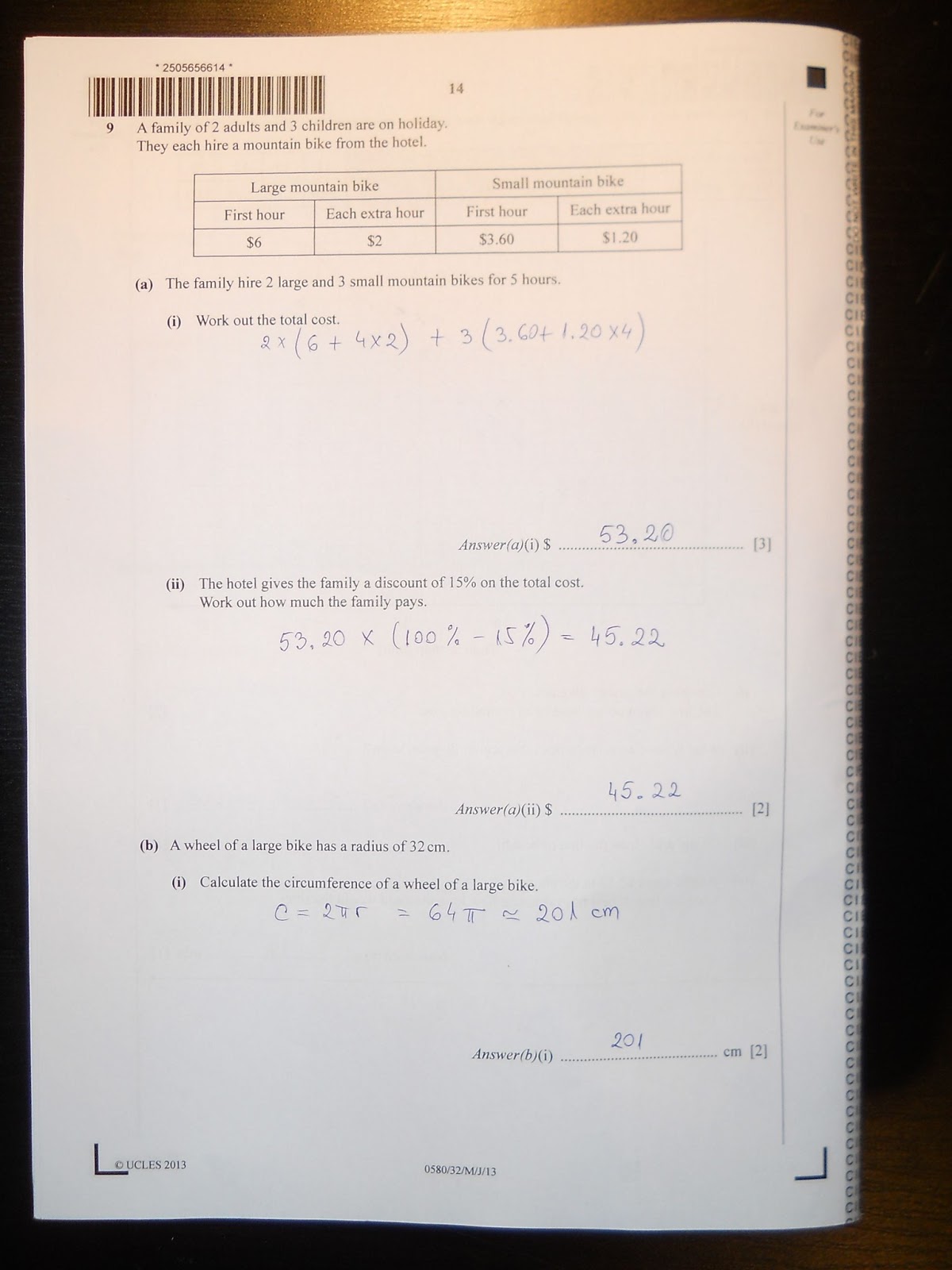 CIE- IGCSE 0580 Mathematics Paper 3 (Core), May/June 2013 – Answers Tagged on: 0580 cie core IGCSE june 2013 mathematics paper 32